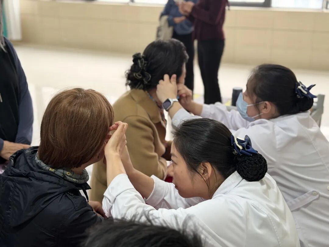 最熱鬧的當(dāng)屬體驗(yàn)區(qū)。在脊柱外科義診臺(tái)前,一位代表主動(dòng)躺上檢查床,配合醫(yī)生進(jìn)行姿勢(shì)評(píng)估,醫(yī)生專(zhuān)注地檢查著,不時(shí)向代表講解著日常脊柱保健的知識(shí);眼科團(tuán)隊(duì)也忙碌不已,為多位代表進(jìn)行了細(xì)致的眼底篩查,不放過(guò)任何一個(gè)可能影響視力的細(xì)節(jié);中醫(yī)適宜技術(shù)刮痧、耳穴壓豆等傳統(tǒng)中醫(yī)療法體驗(yàn)區(qū)更是吸引了眾多代表排起小隊(duì)。大家一邊體驗(yàn),一邊忍不住發(fā)出感嘆:“原來(lái)中醫(yī)也能這么‘潮’,既實(shí)用又有趣!”