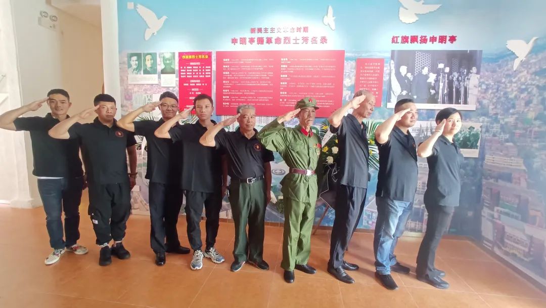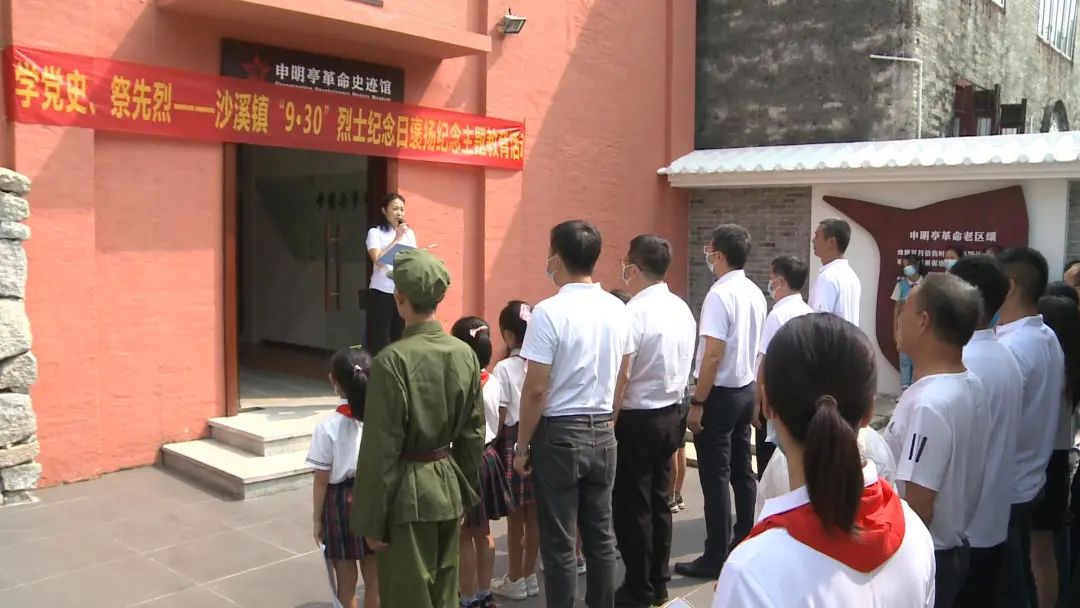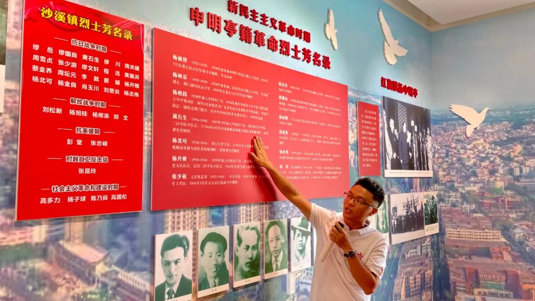 紅色宣講員、沙溪鎮(zhèn)退役軍人紅旗志愿服務(wù)隊隊員、申明亭小組工作人員楊健永介紹申明亭烈士生平事跡。