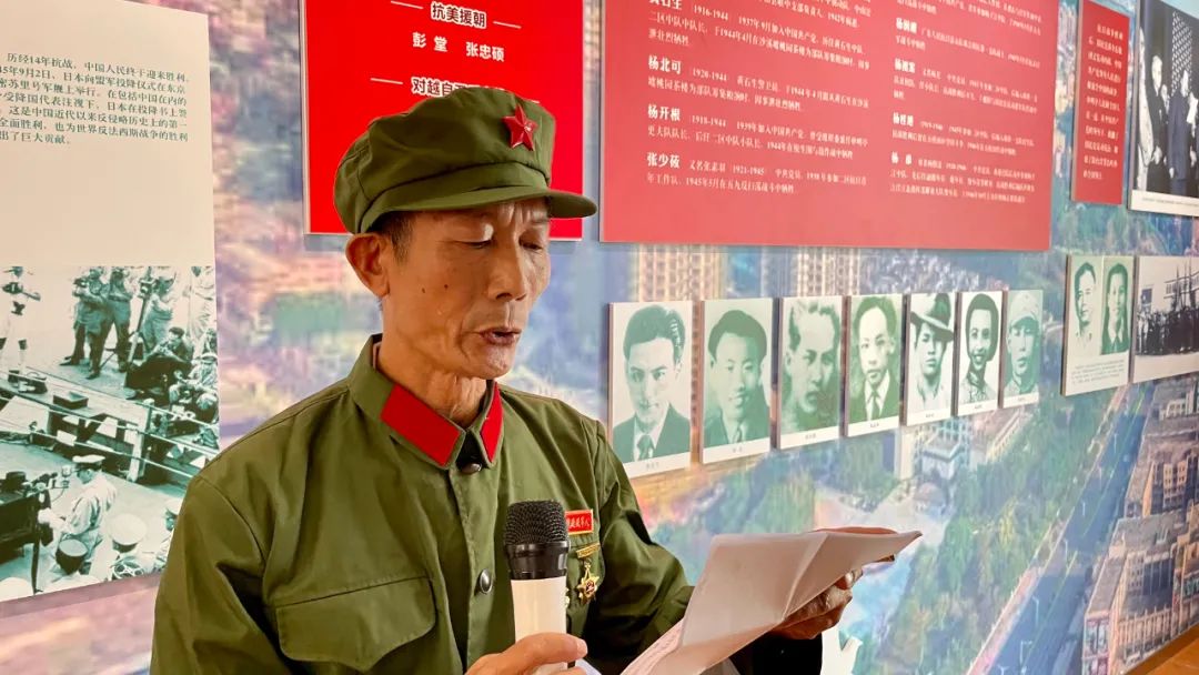 紅色宣講員、沙溪鎮(zhèn)退役軍人紅旗志愿服務(wù)隊隊員、退役老兵阮漢英介紹沙溪鎮(zhèn)烈士生平事跡。