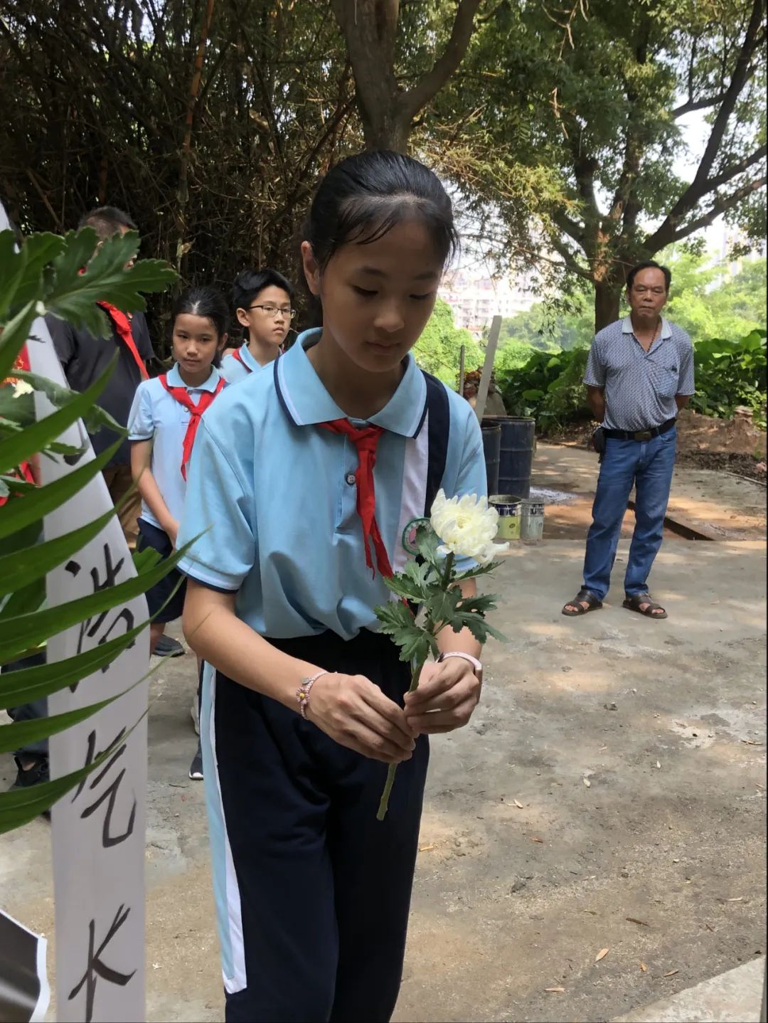 ▲在沙溪鎮(zhèn)黨委委員李海龍、副鎮(zhèn)長候選人余添宏帶領(lǐng)下,按順序依次向楊麗容烈士雕塑獻花。
