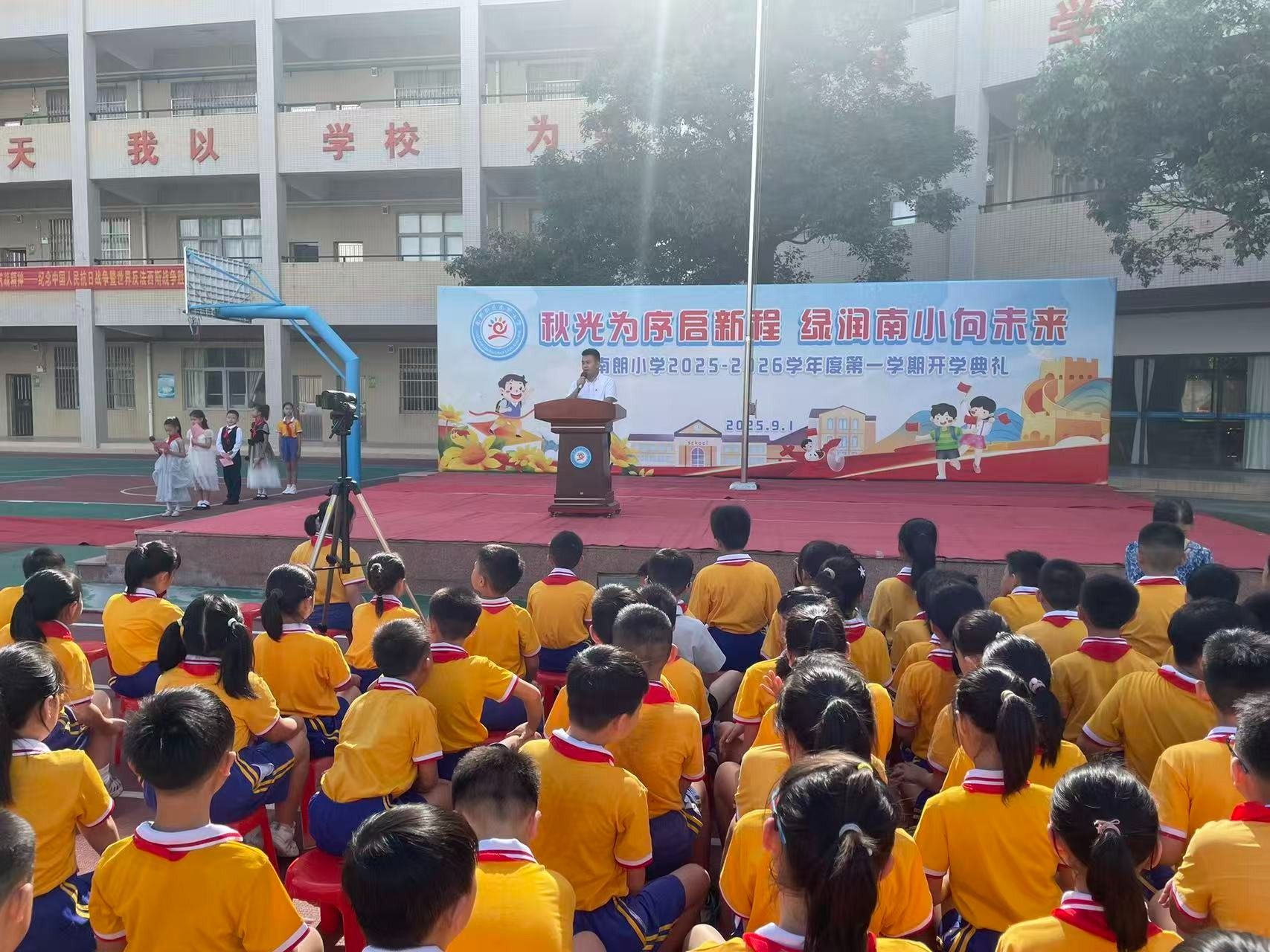 9月1日,中山南朗街道南朗小學(xué)舉行秋季學(xué)期開學(xué)典禮。開學(xué)典禮以紀(jì)念中國人民抗日戰(zhàn)爭暨世界反法西斯戰(zhàn)爭勝利80周年為主題,把愛國主義教育作為新學(xué)期的“開學(xué)第一課”,帶領(lǐng)同學(xué)們回望烽火歲月,弘揚偉大抗戰(zhàn)精神。 南朗街道南朗小學(xué)黨支部書記、校長杜少君為同學(xué)們講述了可歌可泣的抗戰(zhàn)故事。簡文祥 攝開學(xué)典禮上,南朗街道南朗小學(xué)黨支部書記、校長杜少君以《銘記偉大勝利,傳承抗戰(zhàn)精神——紀(jì)念中國人民抗日戰(zhàn)爭暨世界反法西斯戰(zhàn)爭勝利80周年》為題,講述了可歌可泣的抗戰(zhàn)故事,為全體師生上了一堂生動的思政第一課。 92歲的老校長程民興受邀來到學(xué)校,他以親歷者的身份為同學(xué)們講述校園經(jīng)歷的抗戰(zhàn)故事。簡文祥 攝南朗小學(xué)的前身是安定學(xué)校,也是1943年南朗安定戰(zhàn)斗的核心遺址。活動當(dāng)日,92歲的老校長程民興受邀來到學(xué)校,他以親歷者的身份為同學(xué)們講述校園經(jīng)歷的抗戰(zhàn)故事,讓過去的歷史多了份可觸的溫度?!叭毡撅w機轟炸安定學(xué)校時,瓦片碎裂的聲響至今仍在耳畔回響,那次轟炸,我險些沒能活下來?!彼嬖V同學(xué)們,日寇占據(jù)安定學(xué)校后,把兩層教學(xué)樓改造成堡壘,墻外布滿帶刺的鐵絲網(wǎng),槍口日夜對著村口;那時他就躲在閣樓里,親眼看見二樓窗口常年架著機槍,夜里探照燈掃過田野時,全村人都屏息凝神,不敢發(fā)出半點聲響。 如今,程民興的兒女們在國外生活,孩子們想要接他出國,但他卻執(zhí)意留在國內(nèi)。他告訴同學(xué)們:“你們看,咱們現(xiàn)在的日子多好啊——吃的、用的樣樣齊全,出門不管是坐車還是騎車,去哪兒都特別方便;再瞧瞧你們的校園,環(huán)境優(yōu)美,設(shè)備先進。同學(xué)們一定要珍惜這么好的學(xué)習(xí)環(huán)境,認真讀書,增長本領(lǐng),祖國的建設(shè)以后就要靠你們了?!?/p> 杜少君帶領(lǐng)孩子們到南朗小學(xué)操場保留的帶彈孔的殘墻,講述抗戰(zhàn)往事。簡文祥 攝 活動最后,杜少君特意帶領(lǐng)孩子們到南朗小學(xué)操場保留的帶彈孔的殘墻,觸摸那些深淺不一的彈痕。他指向殘墻旁生長的綠植說道:“這片曾被戰(zhàn)火灼燒的土地,如今已長出繁榮的新綠。烈士們用生命守護的家園,正在一代代人的手中變得更好。”觸摸彈痕的那一刻,同學(xué)們仿佛在與歷史對話:傳承偉大抗戰(zhàn)精神,不是一句口號,而是要接過前輩的接力棒,在新時代為家鄉(xiāng)、為祖國奮斗。 校園操場、紅色地標(biāo)、親歷者、戰(zhàn)斗遺址串聯(lián)起一堂行走的思政課。杜少君說:“讓孩子們在歷史現(xiàn)場觸摸過去,才能真正理解‘銘記’的意義。偉大抗戰(zhàn)精神的傳承,就藏在每一次駐足、每一次傾聽、每一次思考里。” 通訊員:于銳 簡文祥 ◆編輯:吳玉珍◆二審:鄭沛鋒◆三審:周亞平 文盾校對——用科技,守文字 |