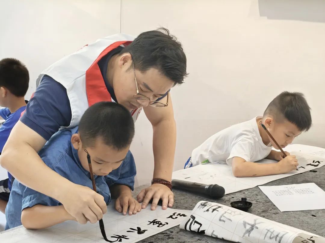 退役軍人走進暑期夏令營教孩子們寫書法
