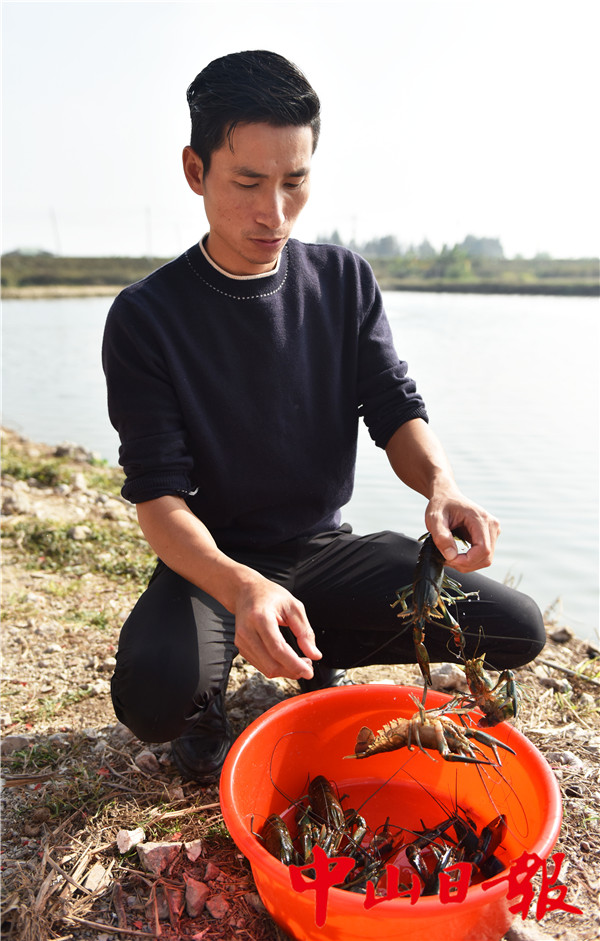1月7日早上7:00,位于港口鎮(zhèn)下南村內(nèi)的中山市漁璟農(nóng)業(yè)發(fā)展有限公司養(yǎng)殖場內(nèi),工人們將一兜兜澳洲淡水小龍蝦拖出水面。兩個小時后,這些小龍蝦便會準時出現(xiàn)在該公司自營的商超生鮮店內(nèi),陸續(xù)走上餐桌。