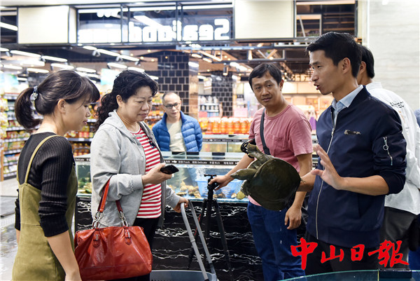 2018年,麥玲波探索“新零售”模式,先后在市場、商超開設了3家生鮮店,每天從養(yǎng)殖場配送水產(chǎn)品。今年1月1日,位于石岐區(qū)的生鮮店正式開業(yè)。生鮮店與商場內(nèi)的酒店達成協(xié)議,實現(xiàn)店內(nèi)購物、酒店免費加工的銷售模式。經(jīng)過兩年多的摸索,麥玲波建立起了從養(yǎng)殖領域到流通領域的完整鏈條。