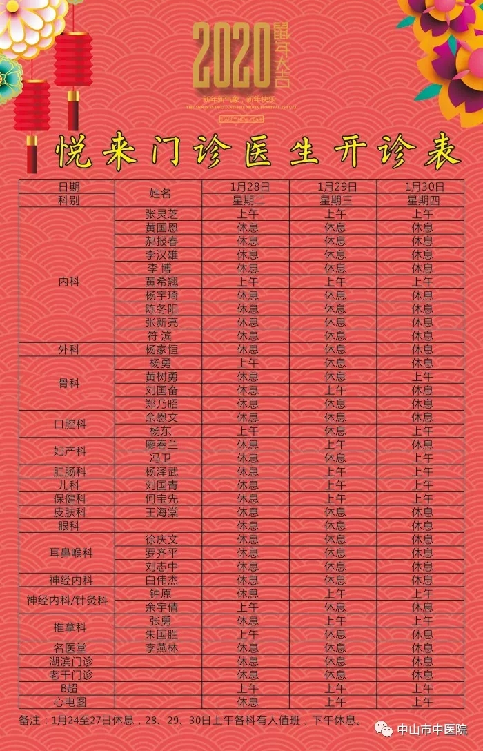 中山市內(nèi)醫(yī)院門診什么時候放假