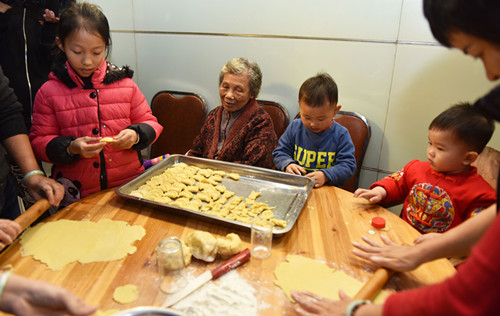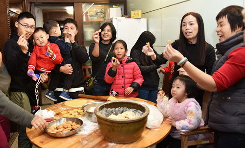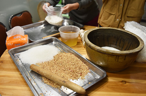 春節(jié)前夕,這群平時(shí)相約喝茶的姐妹們,都會(huì)一起動(dòng)手準(zhǔn)備年貨。不同的是,今年多數(shù)家庭都將自己兒孫帶了過來(lái),一起體驗(yàn)制作傳統(tǒng)年食。