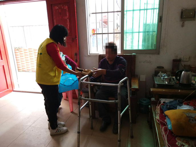 黃大爺是向日葵社工的幫扶對象,他的腳有一些殘疾,一只大、一只小,走起路來一瘸一拐,平日買鞋也特別難,一般都要買兩個(gè)不同的碼數(shù),但也不是特別的合腳。