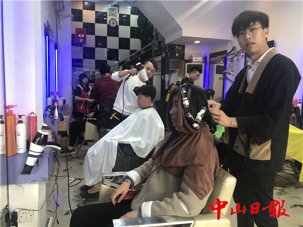 隨后,記者來到石岐區(qū)逢源路一家名叫ABC的理發(fā)店,看到店里坐滿了顧客,幾名發(fā)型師都在忙碌?!拔蚁肽昵鞍杨^發(fā)染染,再燙個(gè)卷發(fā),今天過來等了半個(gè)小時(shí)才輪到我。”市民張女士說。