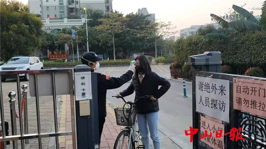 楊曉勇說,小區(qū)的業(yè)主們也很配合物管的工作。1月29日,有一名疫情發(fā)生地省份的業(yè)主要返程回中山。該名業(yè)主主動聯(lián)系到楊曉勇報(bào)備,確定返回到小區(qū)的具體時間,并表示一家人都將自行隔離14天,柴米油鹽等生活用品也會請人代買。1月30日早上5點(diǎn)56分,該業(yè)主接著向楊曉勇報(bào)告具體到達(dá)小區(qū)門口的時間。業(yè)主到達(dá)小區(qū)后,火炬開發(fā)區(qū)疾控中心的工作人員不久也到達(dá)小區(qū),并給業(yè)主一家人測量體溫,均顯示無異常。