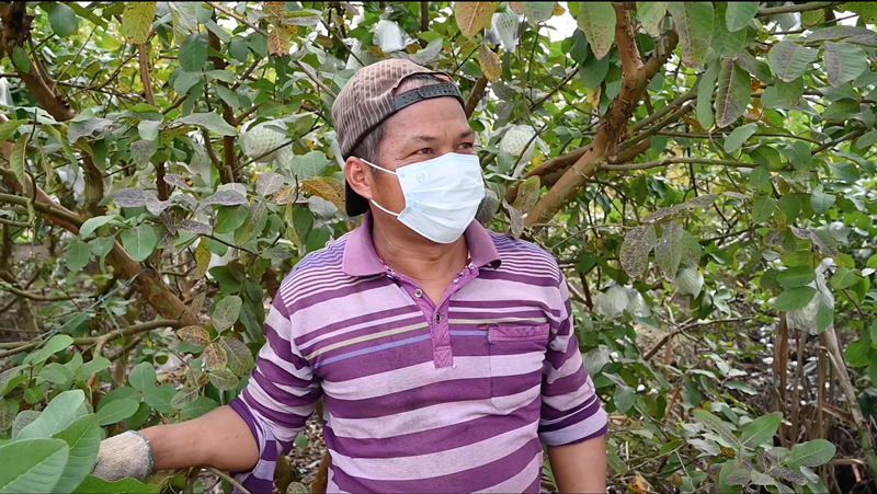 義倉村樂民一隊(duì)的路口旁,老陳的番石榴園正飄散著誘人的香氣,采摘、打包、裝車,夫妻倆忙得不亦樂乎,“我的果園共有七畝地,都是2015年種下的番石榴樹,這一季大約每畝產(chǎn)出七、八千斤的果實(shí)。除了水果外,我和妻子還在園中的空地、道路旁種了一些蔬菜,供自己吃?!崩详愋χ榻B。