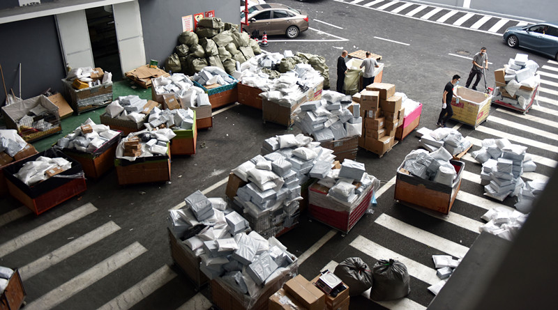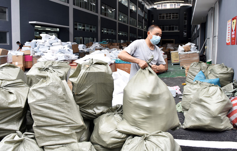 3月19日,太力集團(tuán)湖濱路總部變成發(fā)貨基地,快遞包裹在這里堆成一座座小山。疫情發(fā)生后,太力集團(tuán)每天光電商發(fā)貨量達(dá)3萬-5萬票,在天貓等平臺(tái)實(shí)現(xiàn)收納整理產(chǎn)品銷量第一。