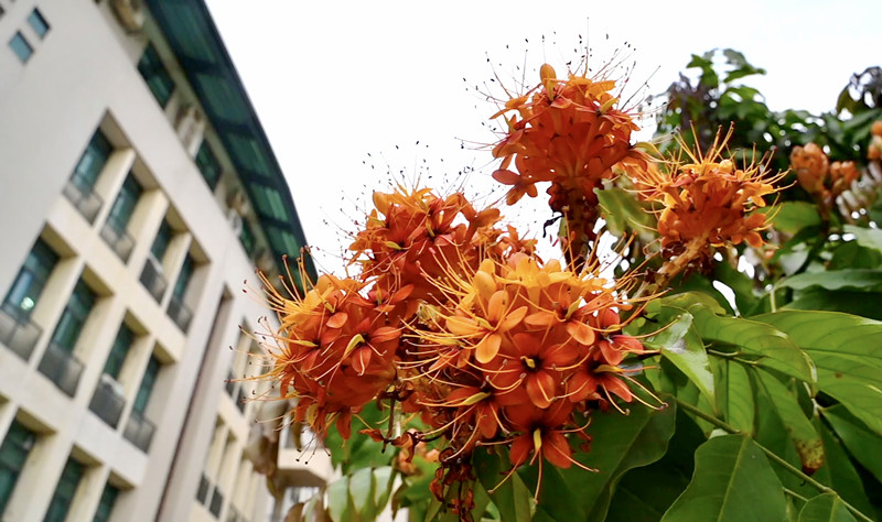 泮橋流水,滿目蒼翠,微風(fēng)拂過(guò),一旁的紫荊花微微搖曳;理科樓旁邊,兩顆無(wú)憂樹(shù)正處于盛花時(shí)節(jié),狀如火炬般的金色花朵覆蓋了整個(gè)樹(shù)冠,遠(yuǎn)眺仿佛一座金色的寶塔;遠(yuǎn)湖里放養(yǎng)了無(wú)數(shù)的錦鯉,紅色、黃色、銀白等魚(yú)兒悠閑地游來(lái)游去,享受春日時(shí)光,偶有魚(yú)兒攪動(dòng)湖水,泛起點(diǎn)點(diǎn)漣漪,聽(tīng)說(shuō)這是高三師生緩解壓力的最佳去處。