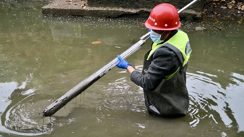 穿上防水的工作服、帶上手套,勘察人員下到齊腰深的大汕尾涌中,將取樣管垂直放置并用力下壓,不一會兒便成功取出了底泥樣本。“底泥污染是黑臭水體形成的主要因素之一,提取底泥、檢測其是否含有重金屬,將為我們后續(xù)的工程設(shè)計和執(zhí)行提供參考方向?!弊鳛橹敢较虻闹匾笜?,底泥取樣也十分講究,歐高峰表示,每隔200到600米,他們就需要采集相應(yīng)的樣本,“除了橫向有要求,底泥取樣的縱向同樣有相關(guān)標準,以大汕尾涌為例,我們將在20公分、50公分和80公分三個深度進行采樣?!睔W高峰笑著表示,除了管狀、需要勘察人員親自到水中進行取樣的取樣器外,橡皮艇和能夠從高空放入水中、抓去表面底泥并“吐”出河水的另一款取樣器也是他們的好幫手,“每次取樣后,我們也將用清水、消毒液和清潔液對取樣器進行三重清洗,確保沒有任何殘液粘在上面?!?/p>
