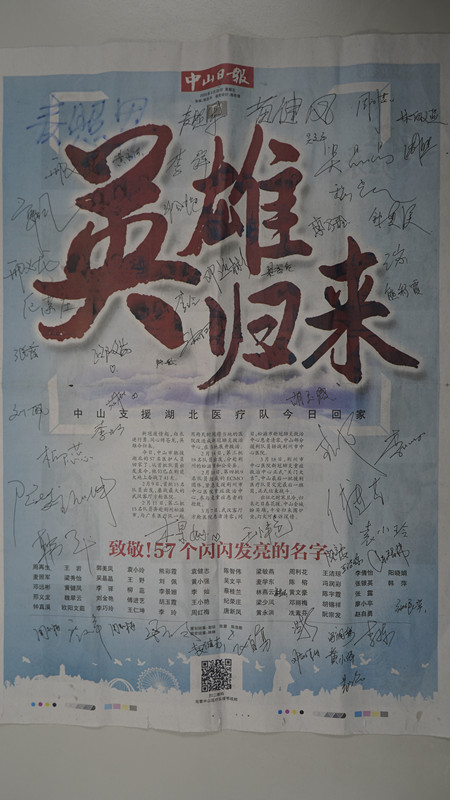 今天晚上,抵達(dá)中山溫泉賓館的醫(yī)療隊(duì)隊(duì)員看到本報(bào)特刊后,紛紛表示“這是一份珍貴的禮物”,并欣然在其中一份特刊的封面上簽名紀(jì)念。57個(gè)名字,完完整整,閃閃發(fā)亮!
