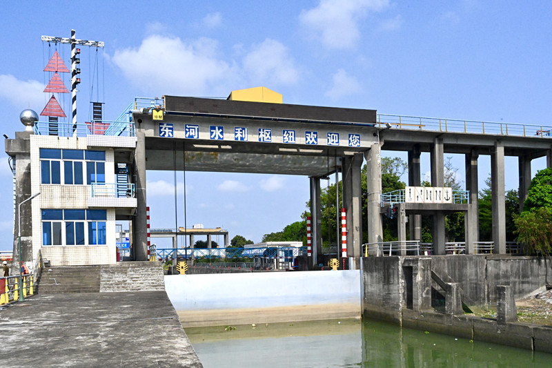 東河水利樞紐的水閘按照100年一遇暴潮加11級風浪爬高標準設計,過閘流量達到每秒1020立方米;排澇泵站按照5年一遇外江水位、10年一遇24小時連續(xù)暴雨城鎮(zhèn)1天排干標準設計,流量達到每秒273立方米。雄厚的實力、時刻嚴陣以待的工作人員使它在面對近年來威脅最大的臺風“天鴿”時依然圓滿完成任務。